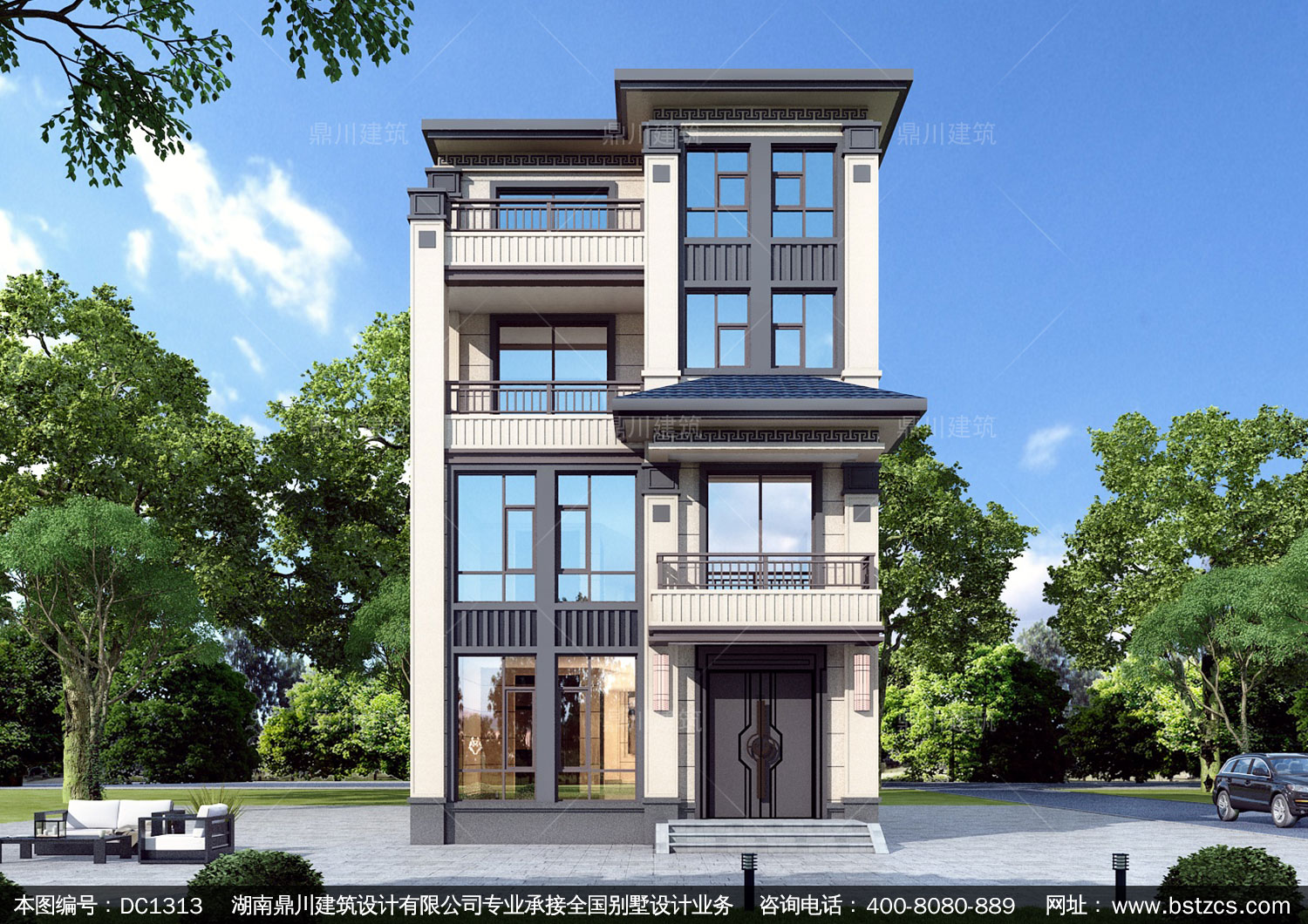 現代四層帶商鋪別墅圖紙及效果圖_新農村自建別墅設計,鼎川建筑