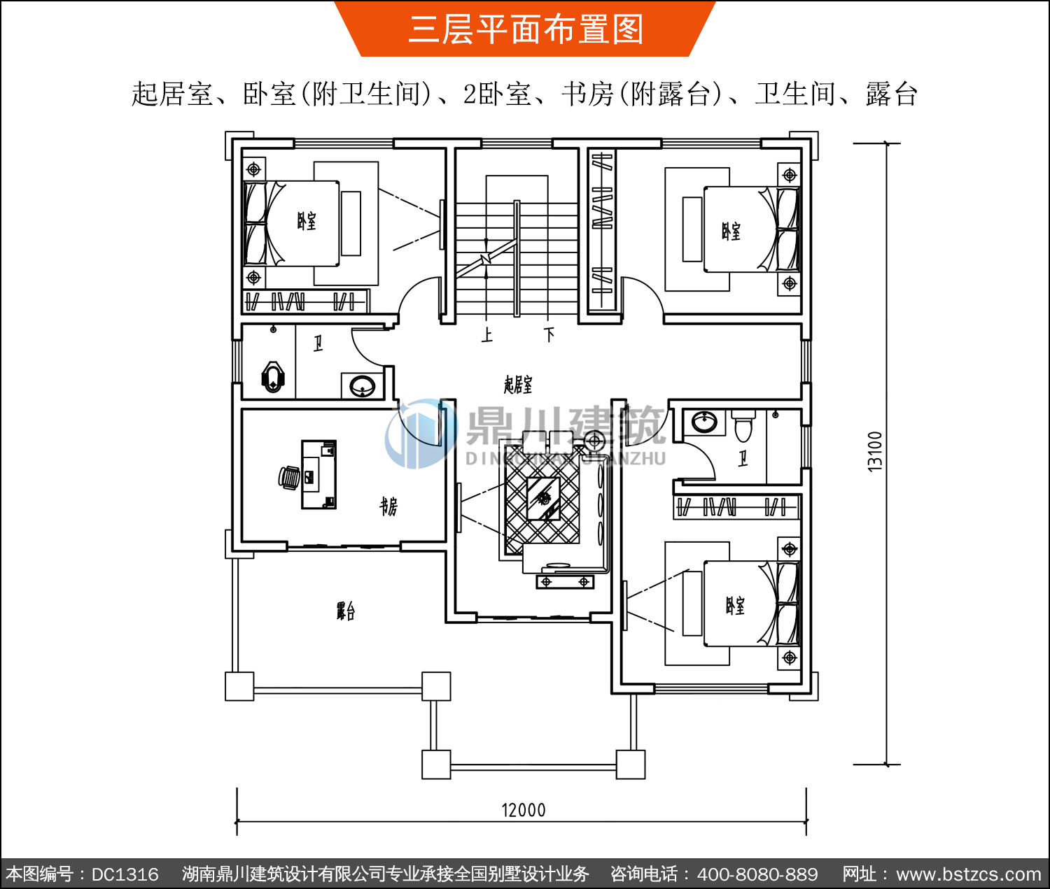 三層帶露臺復式別墅施工圖紙及效果圖_新農(nóng)村自建房屋設計,鼎川