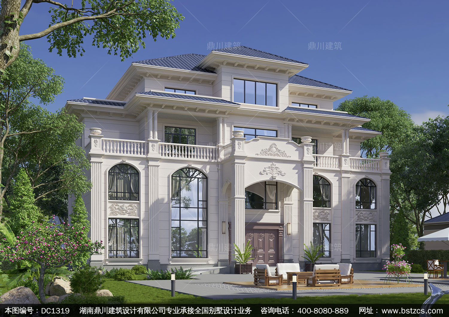 大氣歐式三層帶閣樓別墅施工圖紙及效果圖_農村自建別墅設計,鼎川建筑