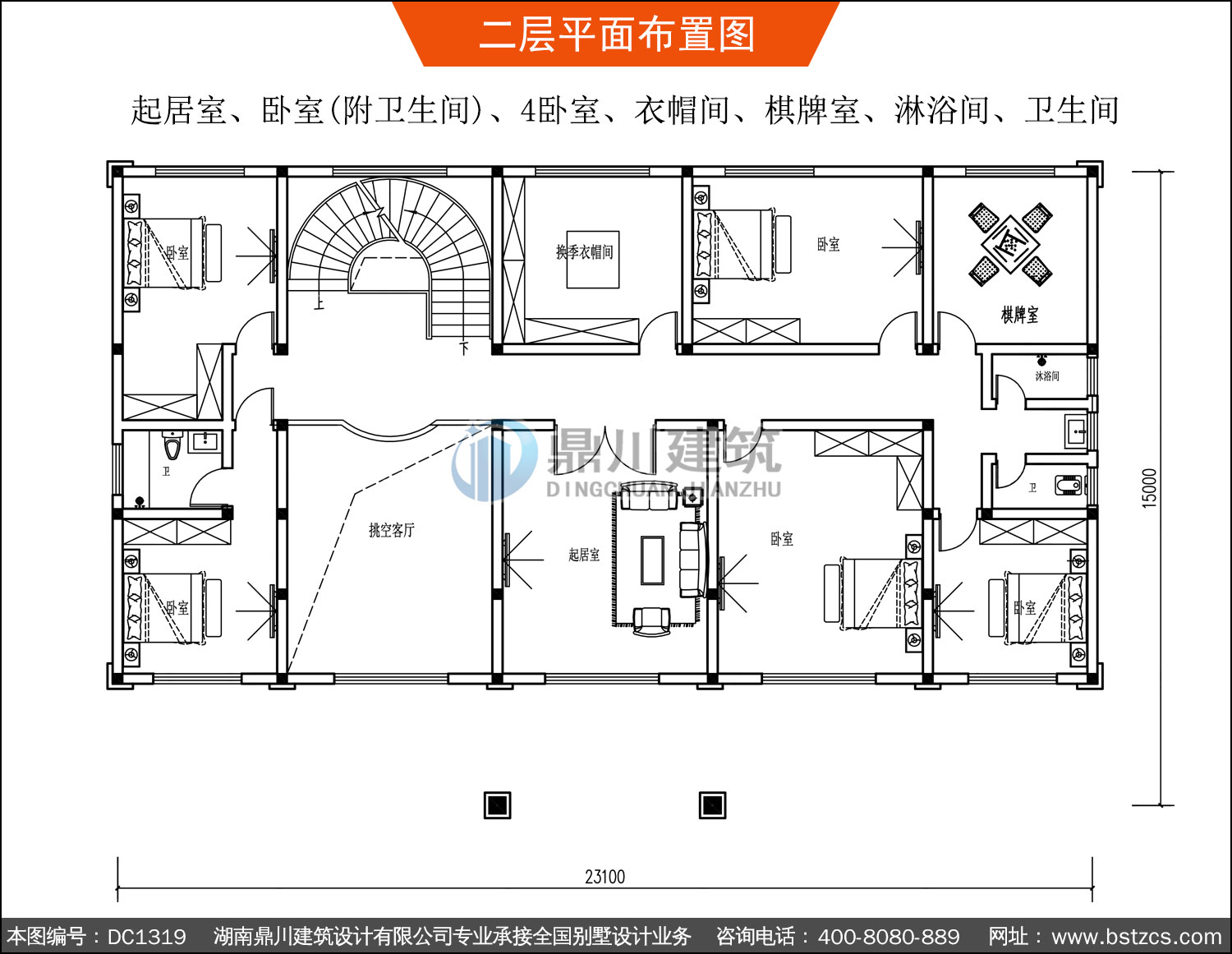 | 一 層: | 堂屋、客廳(中空)、茶室、廚房、餐廳、2臥室(附衛生間)、臥室、娛樂區、棋牌室、洗衣房、衛生間 | |||