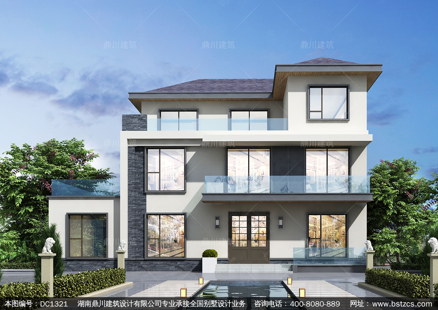 現代三層簡約別墅設計圖紙及效果圖_新農村自建別墅設計,鼎川建