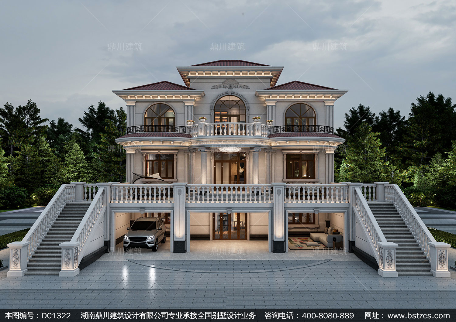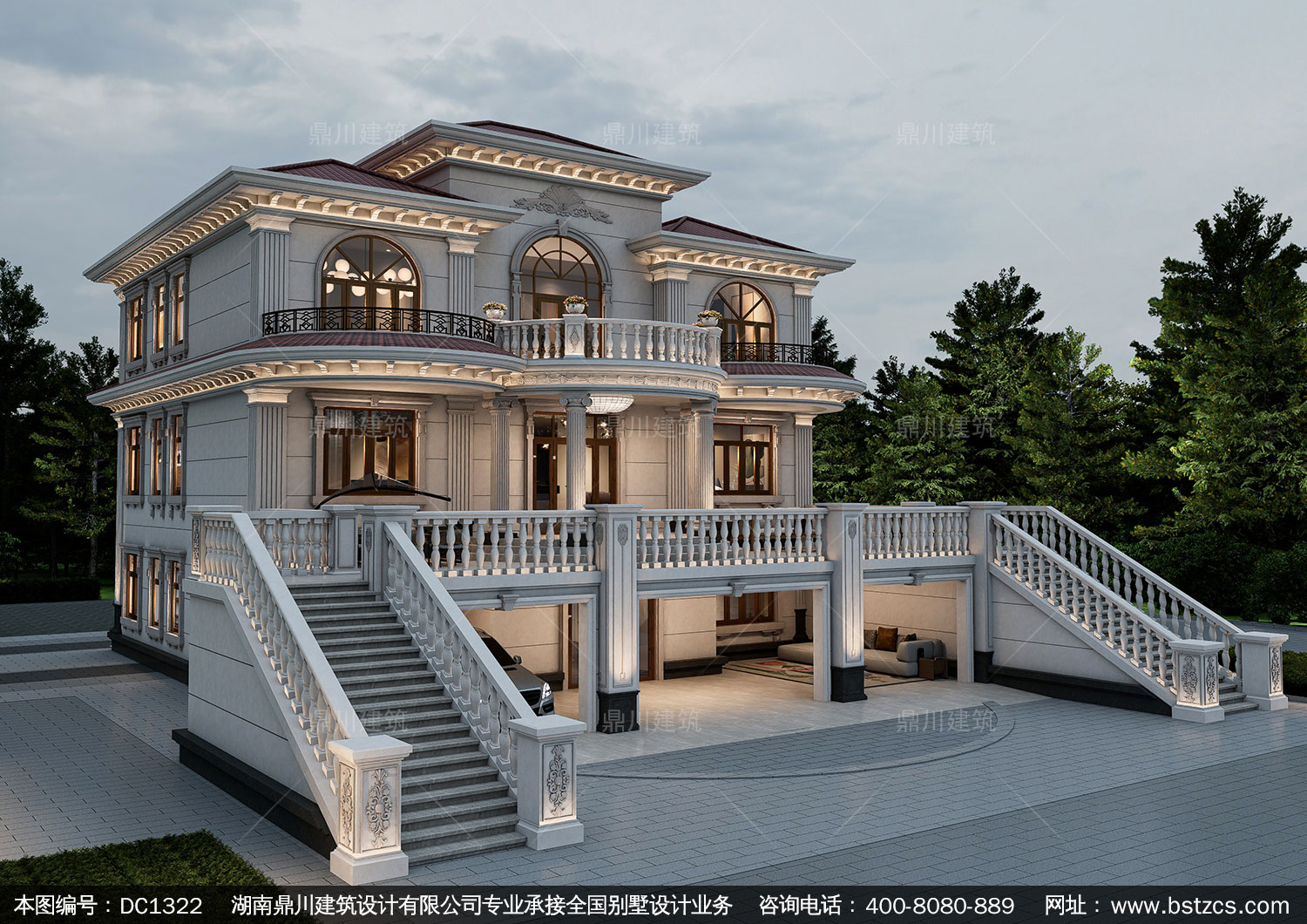 歐式三層帶架空層別墅圖紙及效果圖_農村自建別墅設計,鼎川建筑