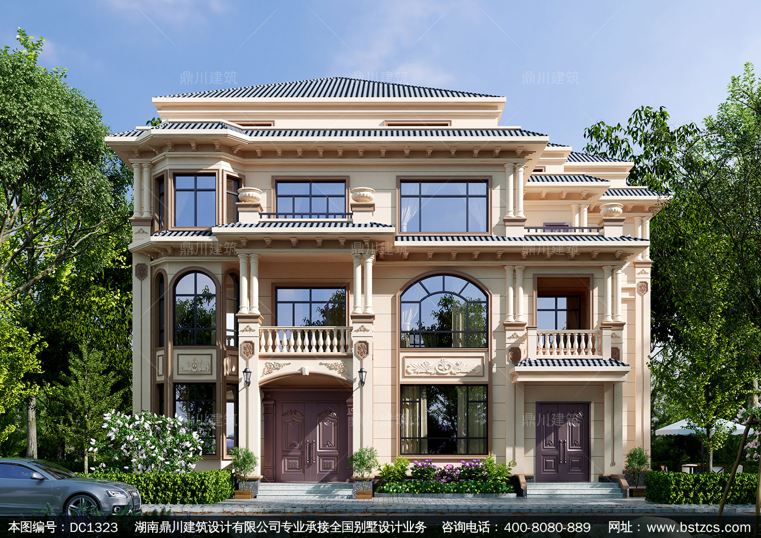 歐式三層帶車庫別墅施工圖紙及效果圖_農村自建別墅設計,鼎川建