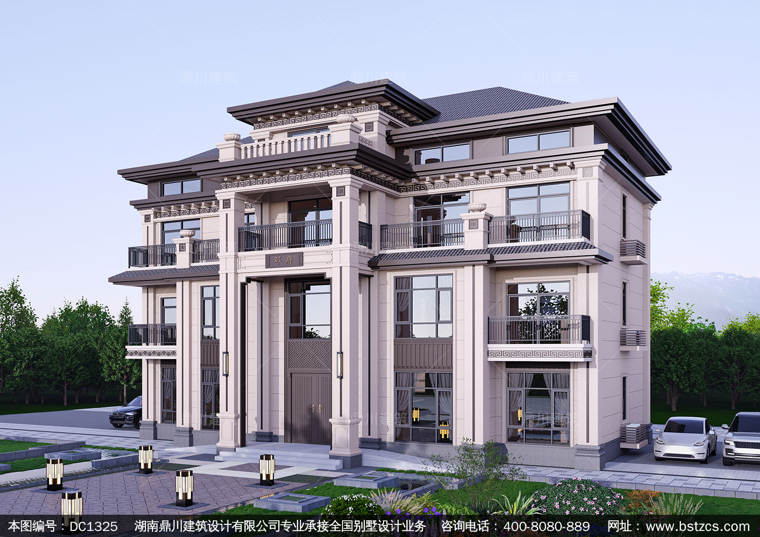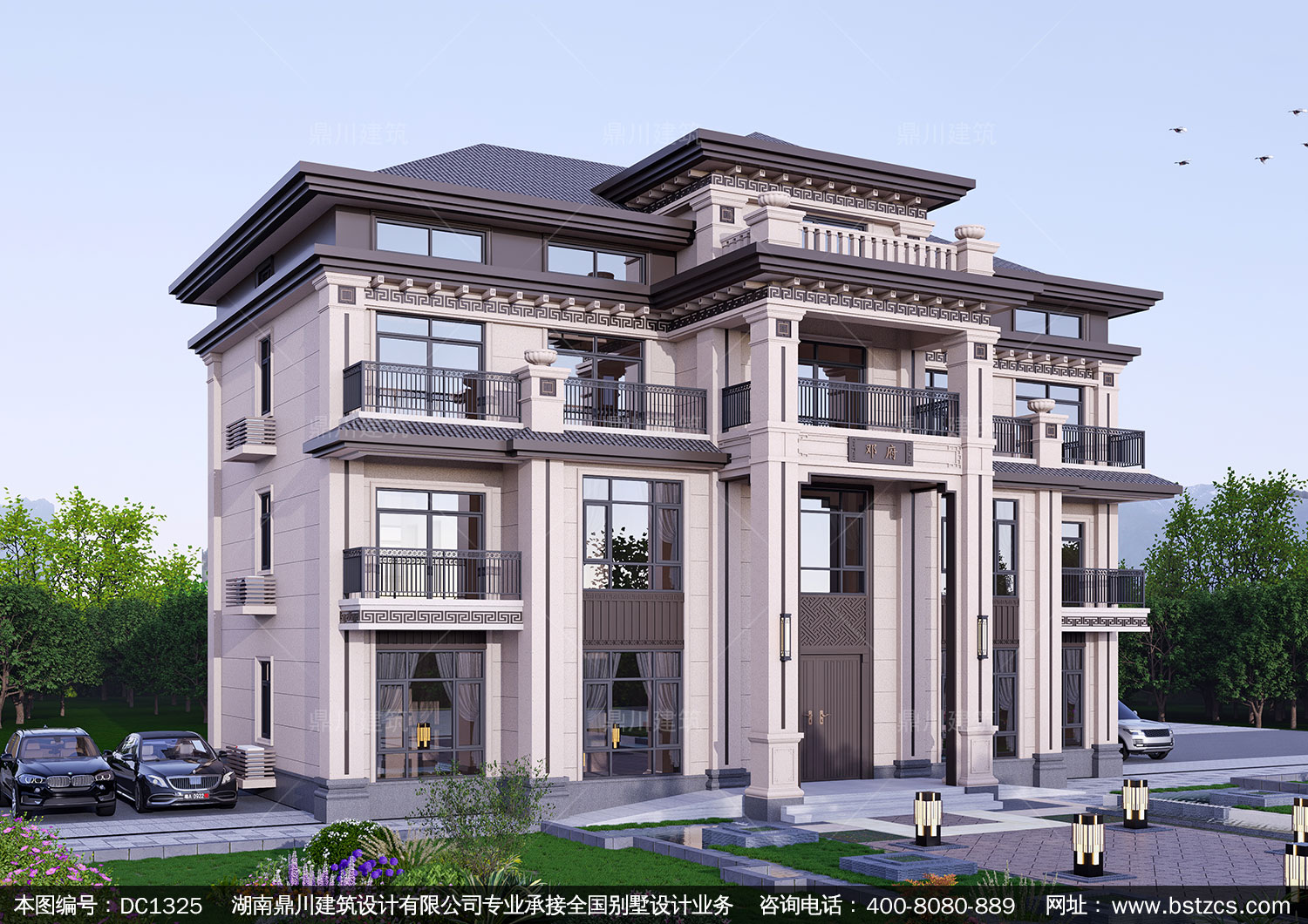 大氣新中式四層別墅施工圖紙及效果圖_農(nóng)村自建別墅設(shè)計,鼎川建筑