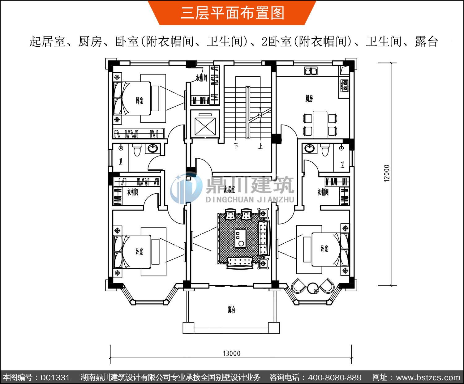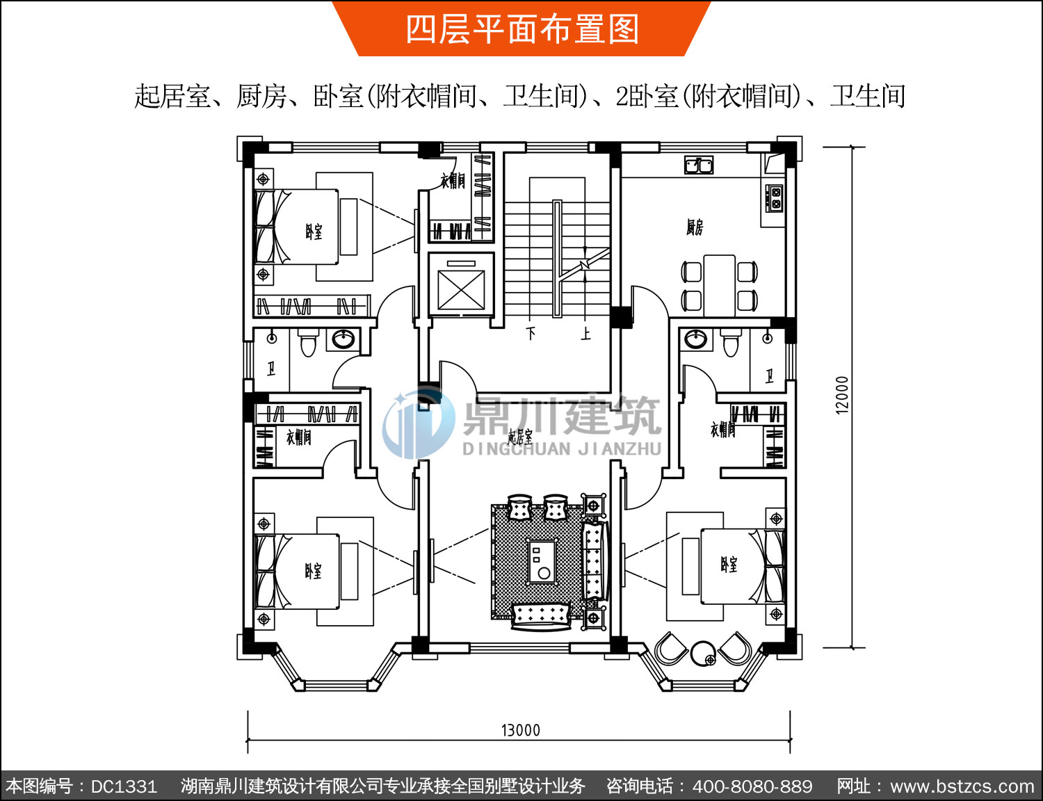| 四 層: | 起居室、廚房、臥室(附衣帽間、衛(wèi)生間)、2臥室(附衣帽間)、衛(wèi)生間 | |||