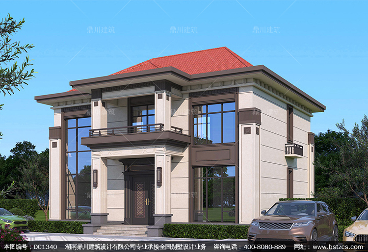二層帶陽臺新中式別墅施工圖紙及效果圖_新農村自建房設計,鼎川