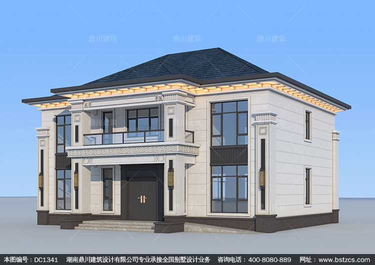 新中式二層實用別墅施工圖紙及效果圖_農村自建房設計,鼎川建筑