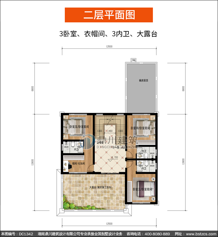 | 二 層: | 3臥室、衣帽間、3內衛、大露臺 | |||