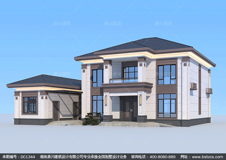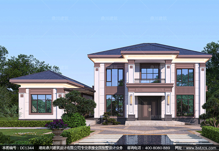 新中式二層帶柴火房別墅圖紙及效果圖_農村自建別墅設計,鼎川建