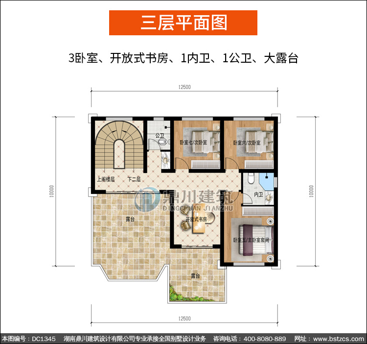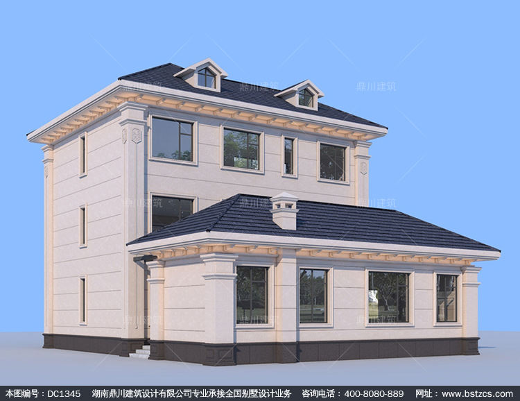 歐式三層帶復式別墅施工圖紙及效果圖_農(nóng)村自建別墅設計,鼎川建筑