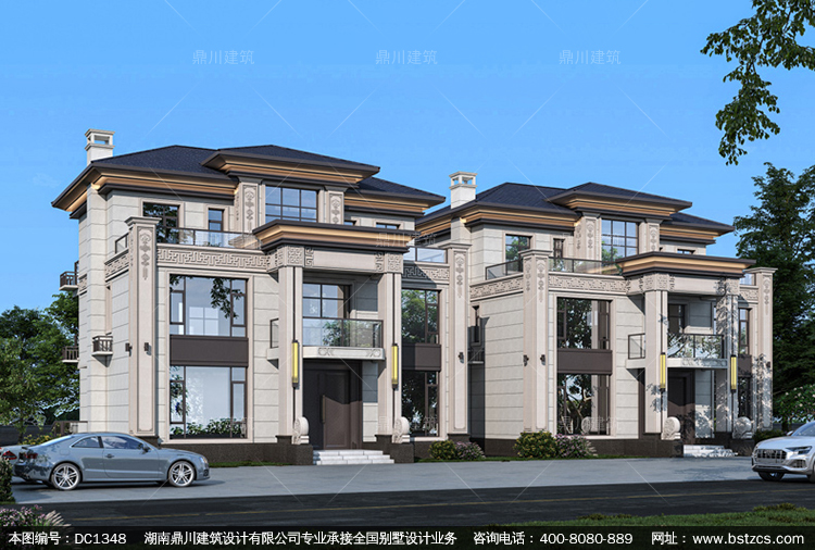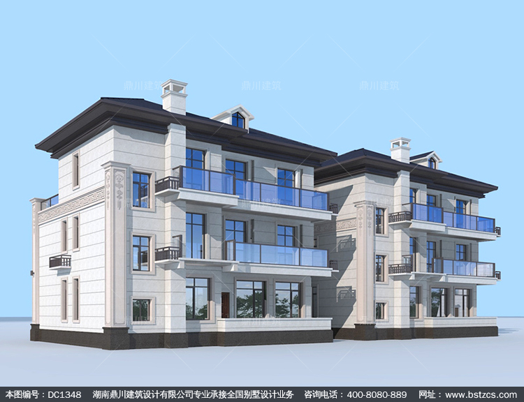 大氣新中式三層復式別墅圖紙及效果圖_農村自建別墅設計,鼎川建