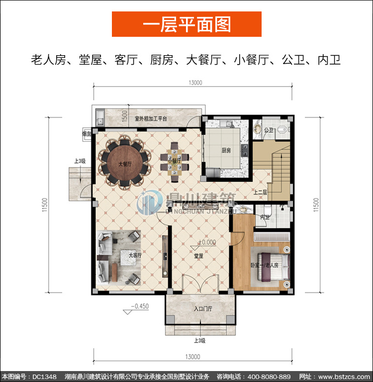 | 一 層: | 老人房、堂屋、客廳、廚房、大餐廳、小餐廳、公衛、內衛 | |||