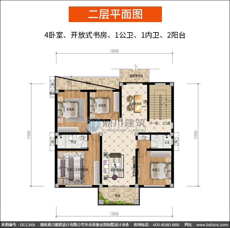 | 二 層: | 4臥室、開放式書房、1公衛、1內衛、2陽臺 | |||