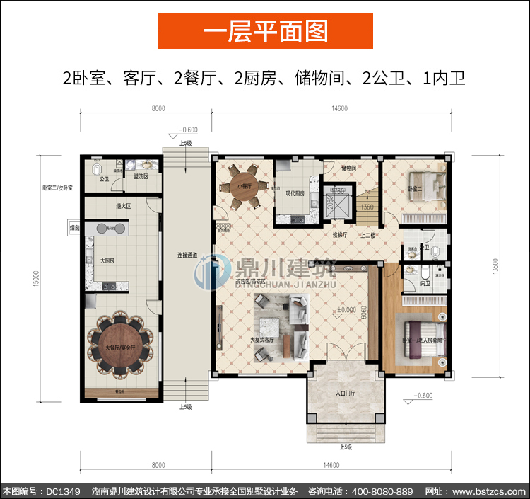 | 一 層: | 2臥室、客廳、2餐廳、2廚房、儲物間、2公衛(wèi)、1內(nèi)衛(wèi) | |||