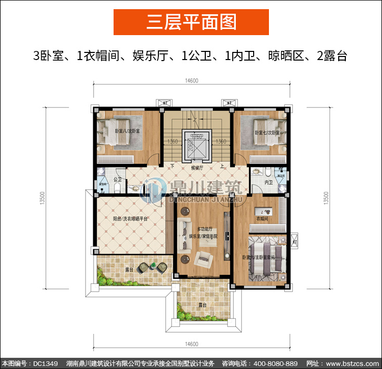 | 三 層: | 3臥室、1衣帽間、娛樂廳、1公衛(wèi)、1內(nèi)衛(wèi)、晾曬區(qū)、2露臺 | |||
