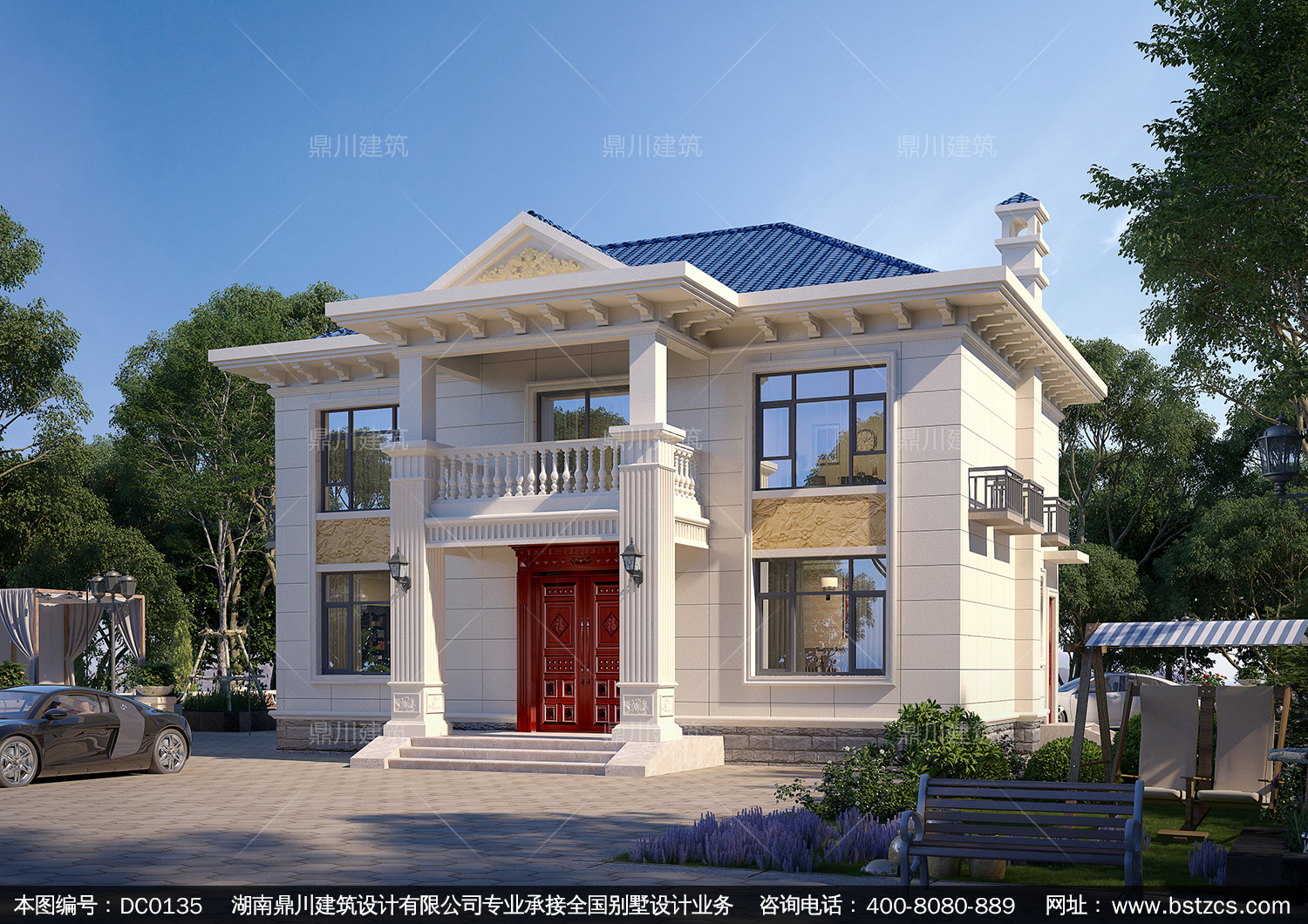 新農(nóng)村二層帶陽臺小別墅效果圖及施工圖紙_鄉(xiāng)村自建房設(shè)計,鼎川建筑