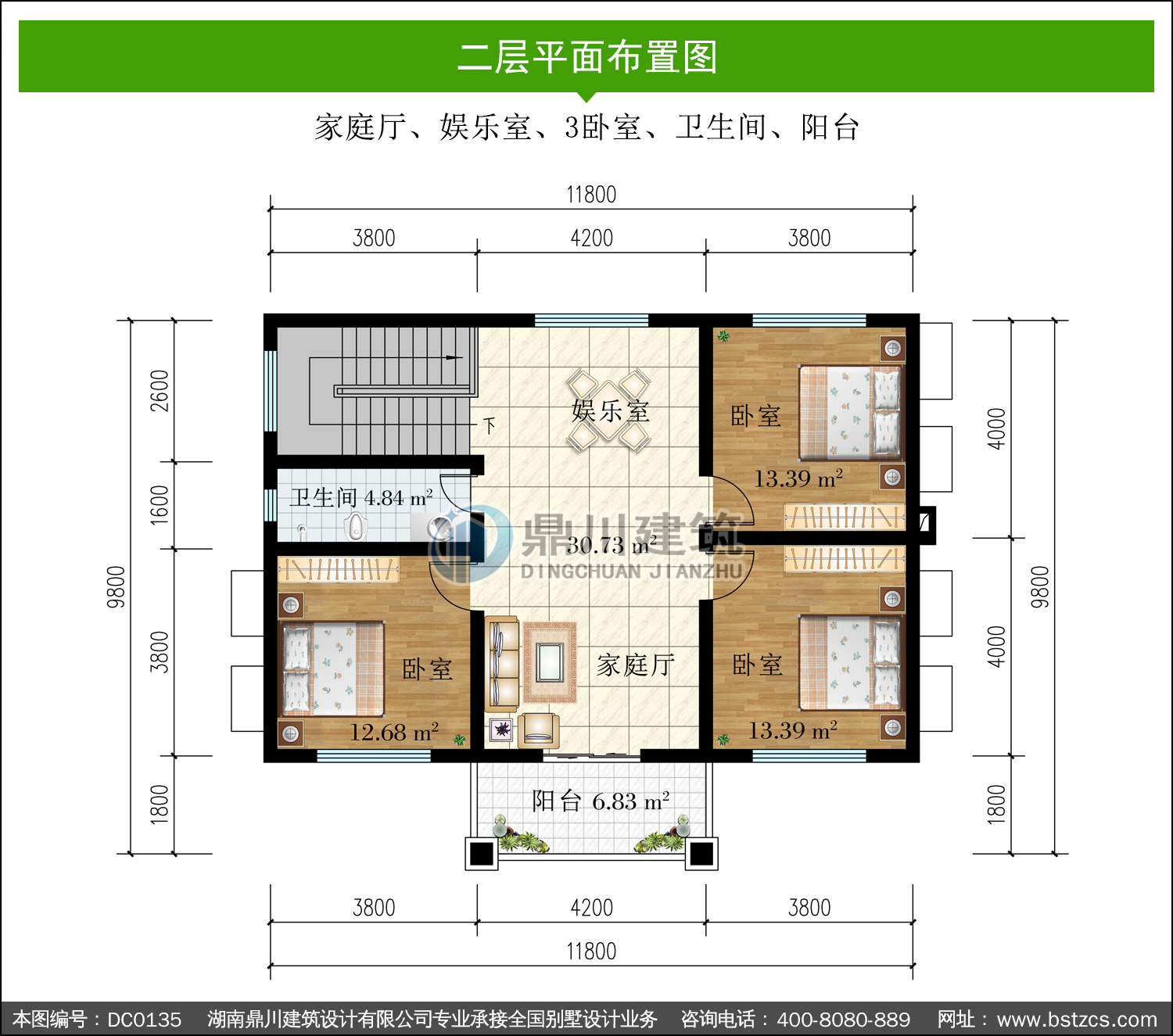 | 二 層: | 家庭廳、娛樂室、3臥室、衛(wèi)生間、陽臺 | |||