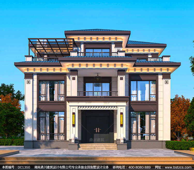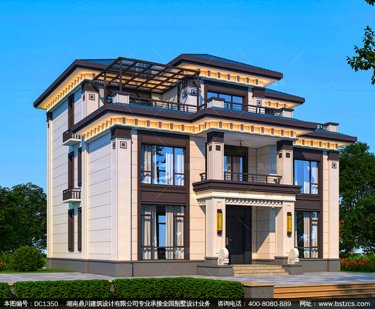 新中式三層別墅施工圖紙及效果圖_農村自建別墅設計,鼎川建筑