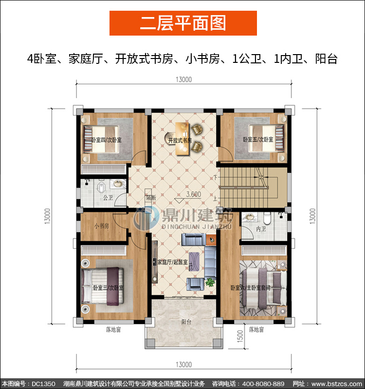 | 二 層: | 4臥室、家庭廳、開放式書房、小書房、1公衛、1內衛、陽臺 | |||