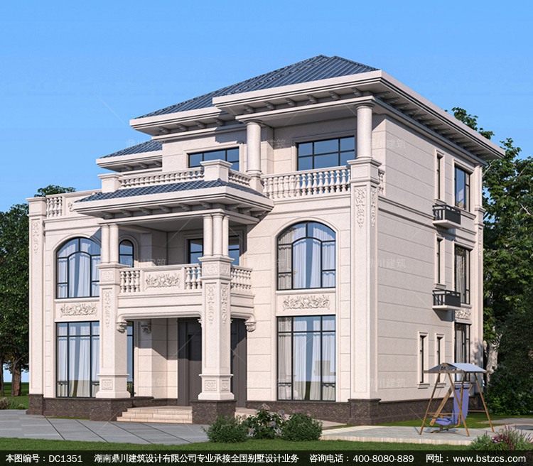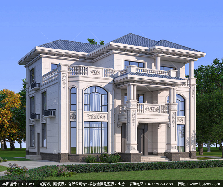 大氣歐式三層復式別墅圖紙及效果圖_農村自建別墅設計,鼎川建筑