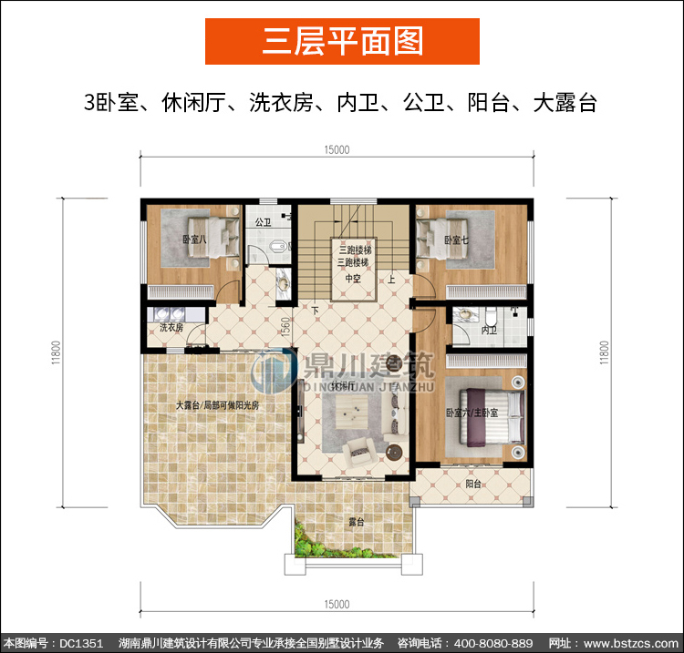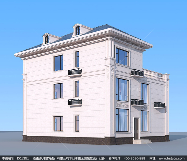 歐式三層帶露臺別墅施工圖紙及效果圖_鄉村自建別墅設計,鼎川建