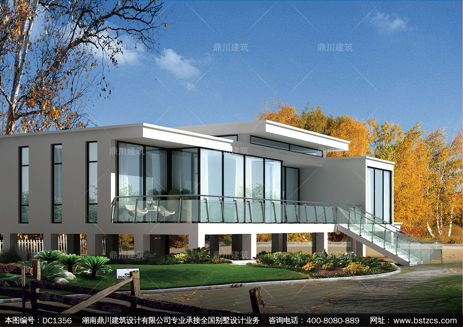 現(xiàn)代架空一層帶別墅效果圖及施工圖紙_農(nóng)村自建別墅設(shè)計(jì),鼎川建筑