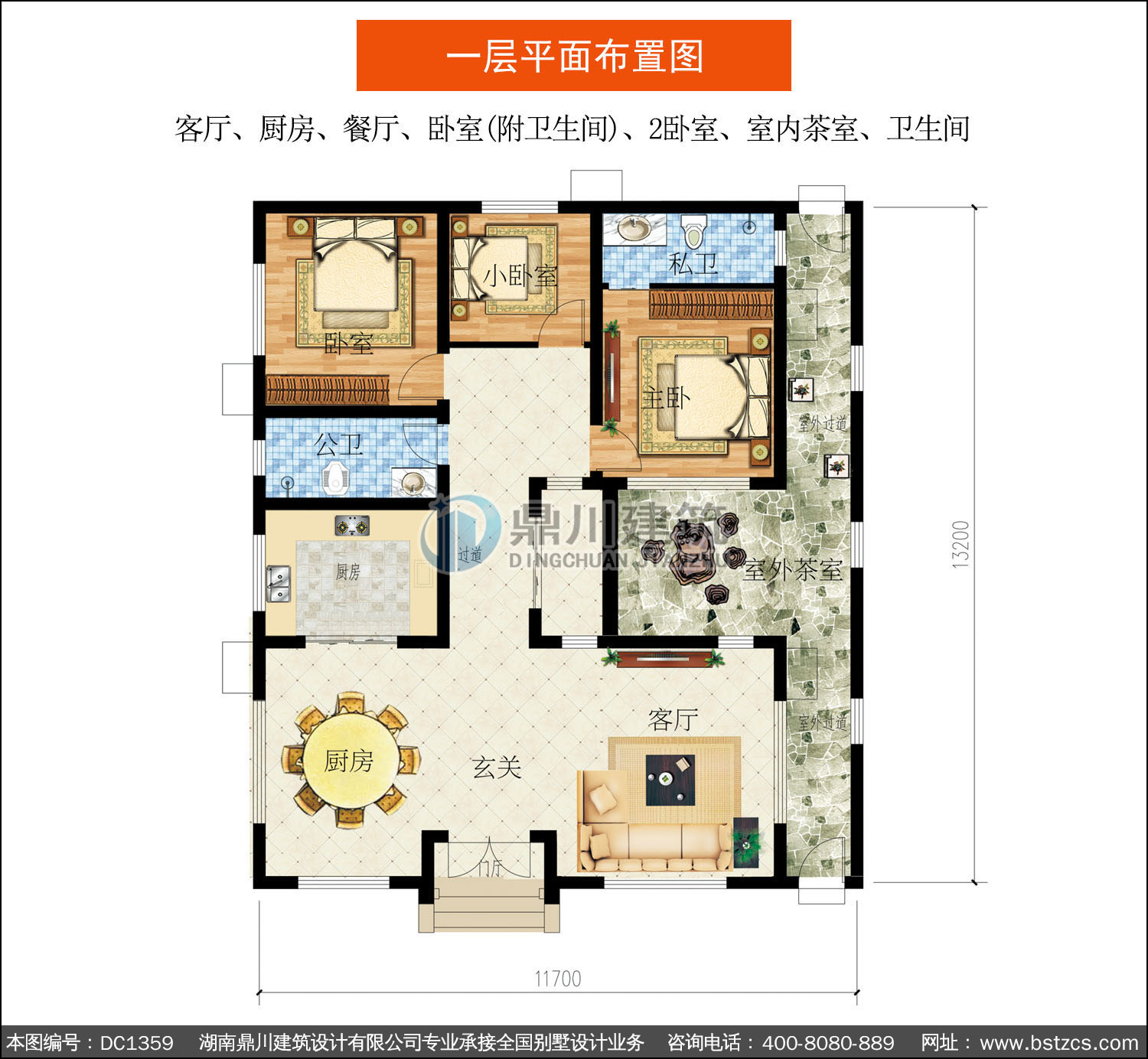中式一層實用別墅施工圖紙及效果圖_農村自建小別墅設計,鼎川建