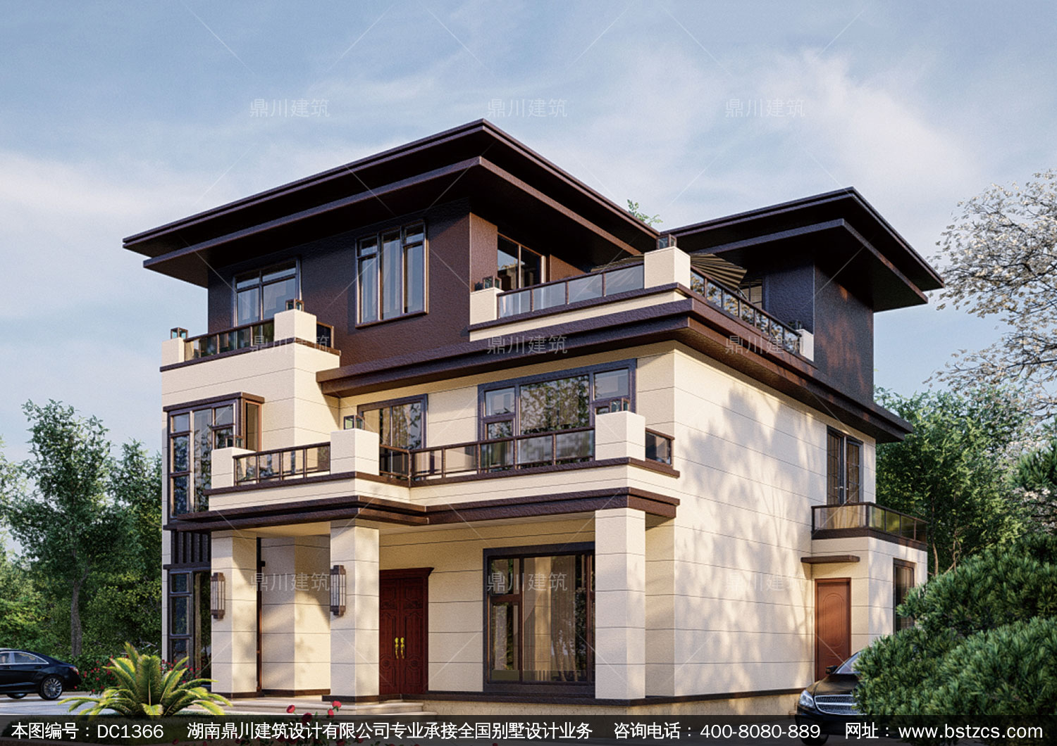 新中式三層復式別墅效果圖及施工圖紙_農村自建別墅設計,鼎川建筑