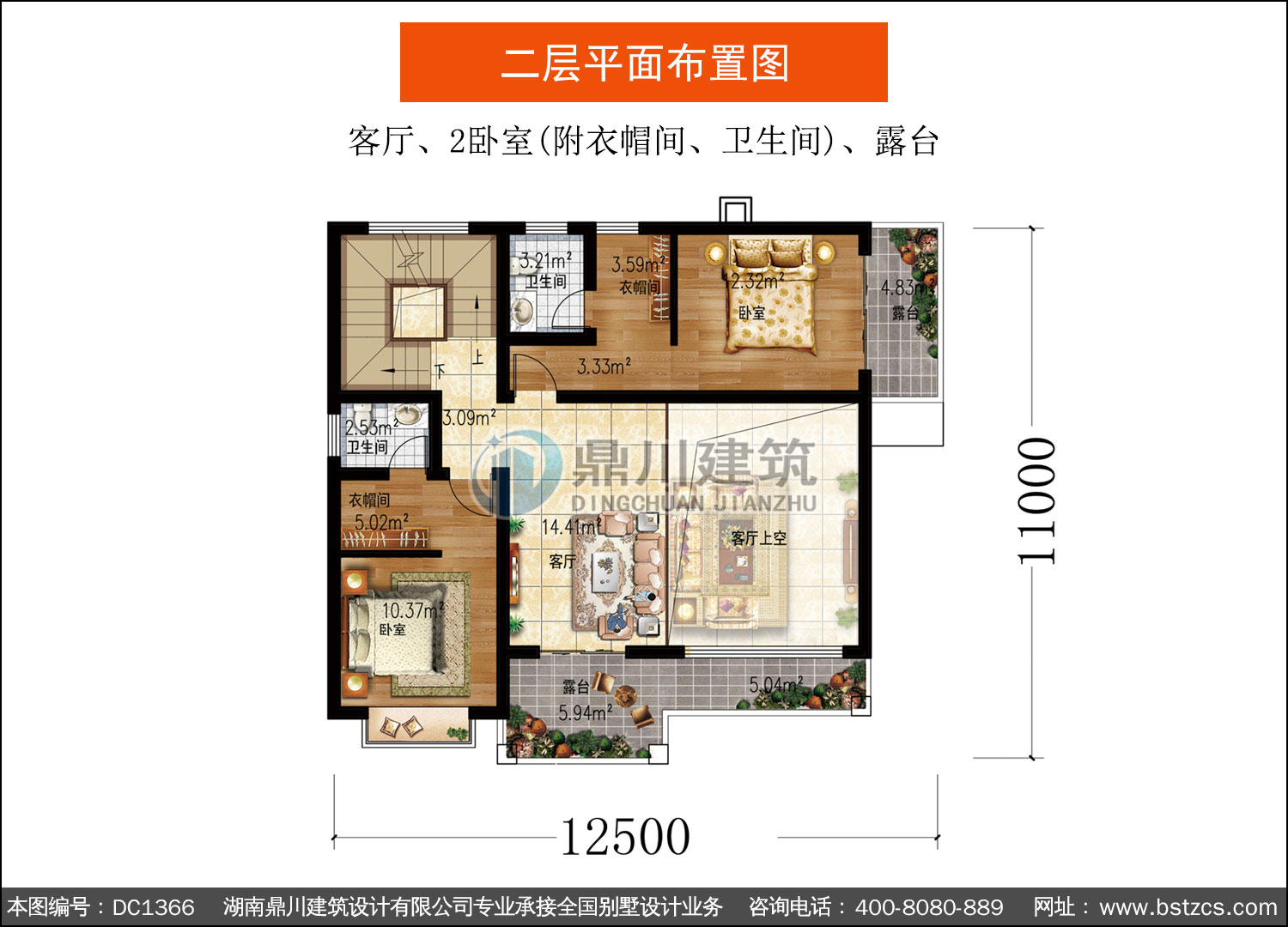 | 二 層: | 客廳、2臥室(附衣帽間、衛生間)、露臺 | |||
