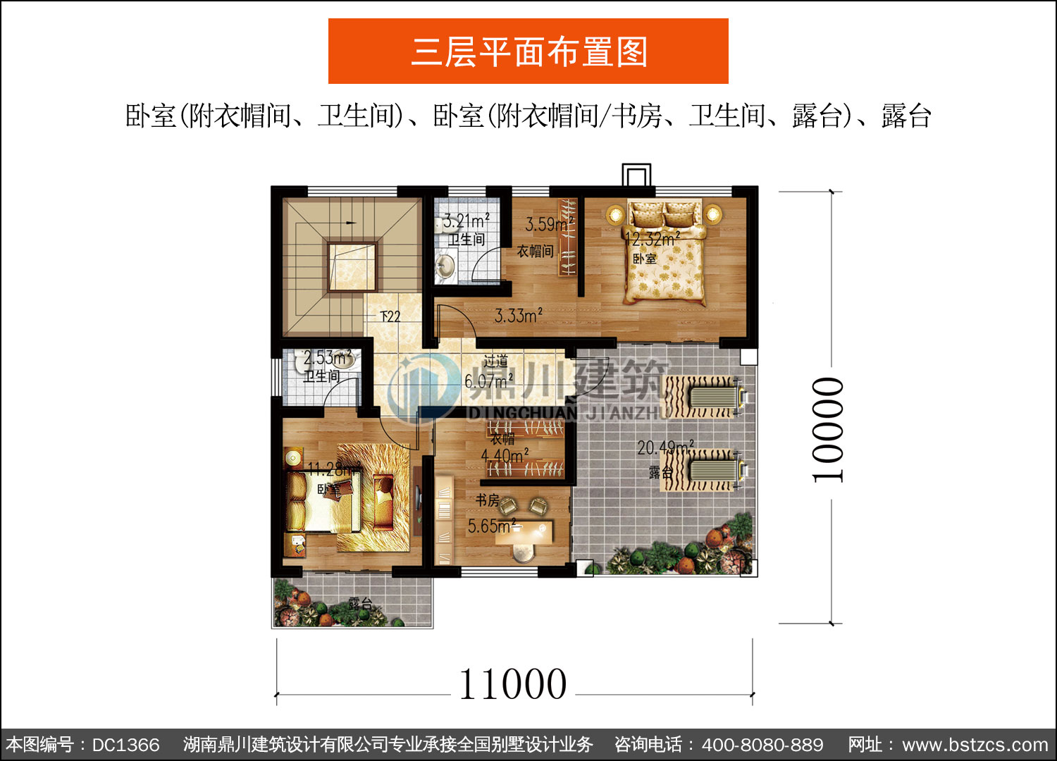 新中式三層復式別墅施工圖紙及效果圖_農村自建別墅設計,鼎川建