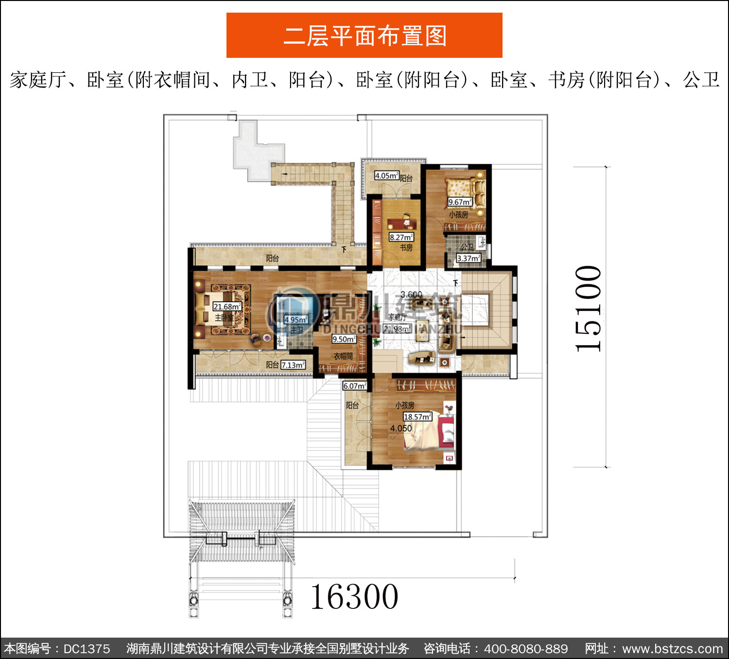 | 二 層: | 家庭廳、臥室(附衣帽間、內衛、陽臺)、臥室(附陽臺)、臥室、書房(附陽臺)、公衛 | |||