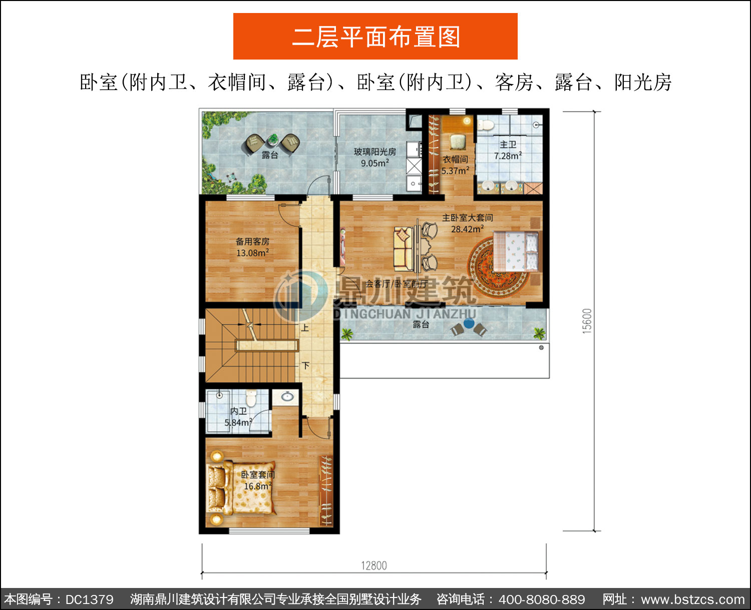 | 二 層: | 臥室(附內衛、衣帽間、露臺)、臥室(附內衛)、客房、露臺、陽光房 | |||