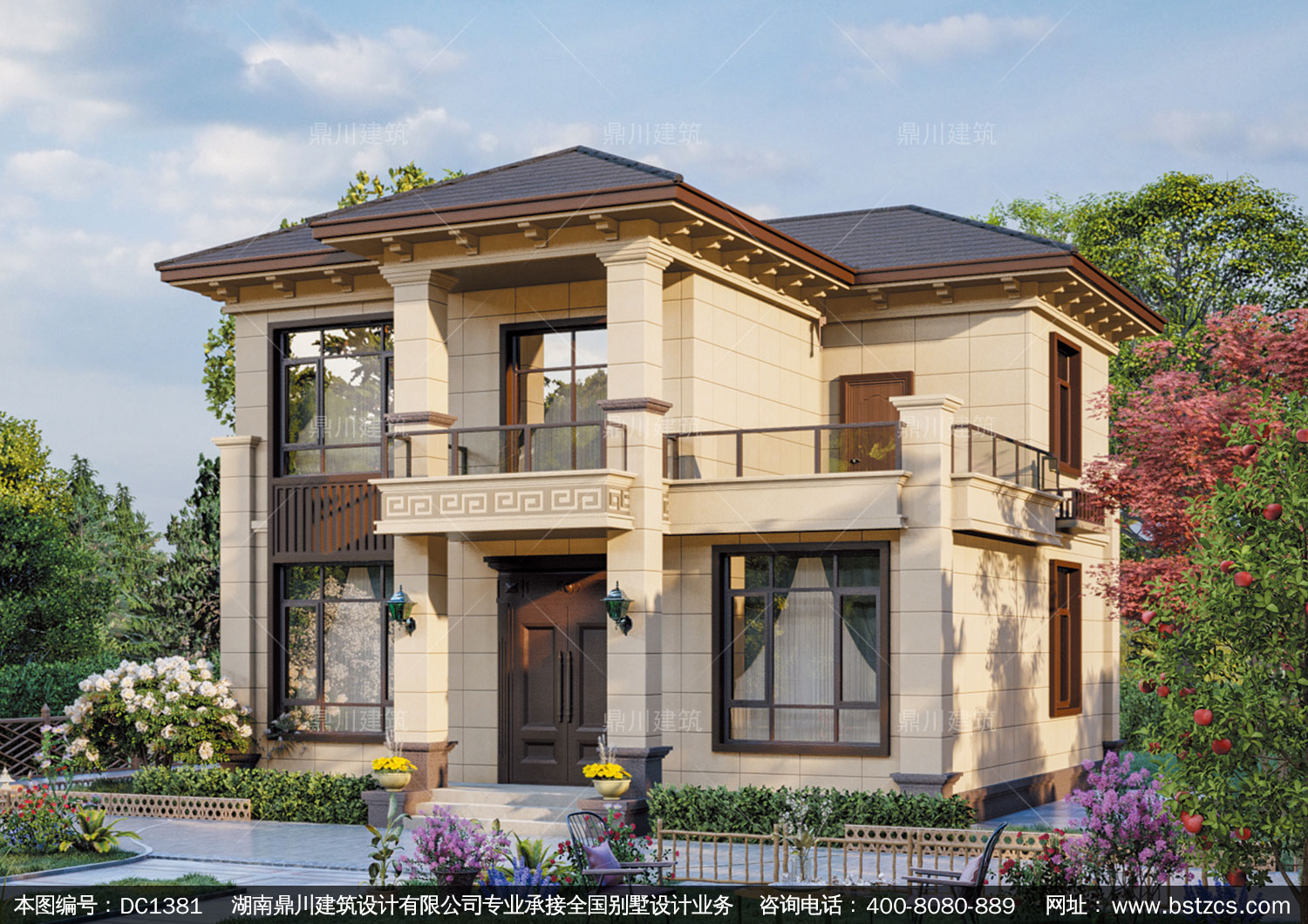 新中式二層別墅效果圖及施工圖紙_農(nóng)村自建別墅設(shè)計(jì),鼎川建筑