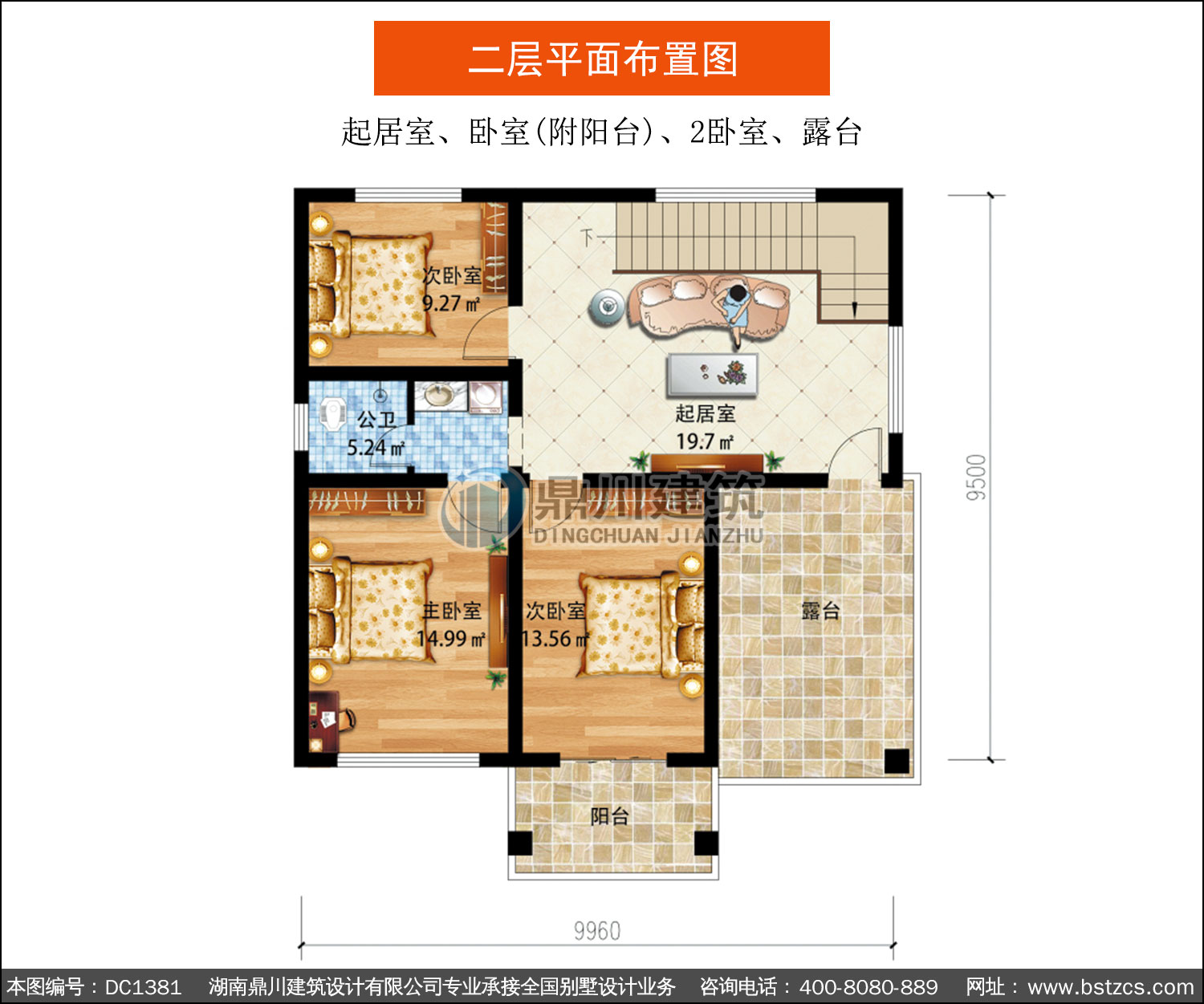 | 二 層: | 起居室、臥室(附陽(yáng)臺(tái))、2臥室、露臺(tái) | |||