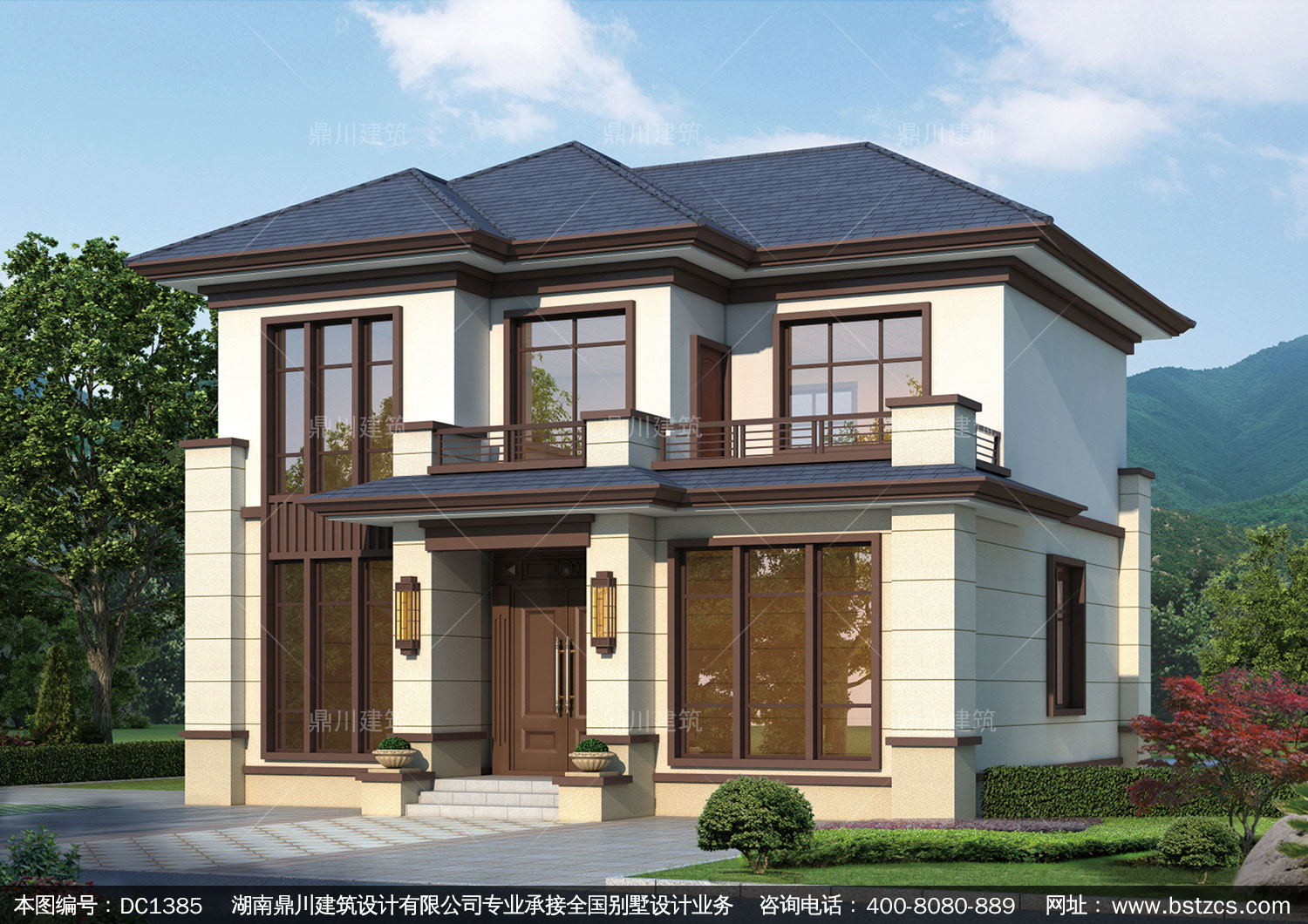 新中式二層別墅圖紙及外觀效果圖_農村自建別墅設計,鼎川建筑