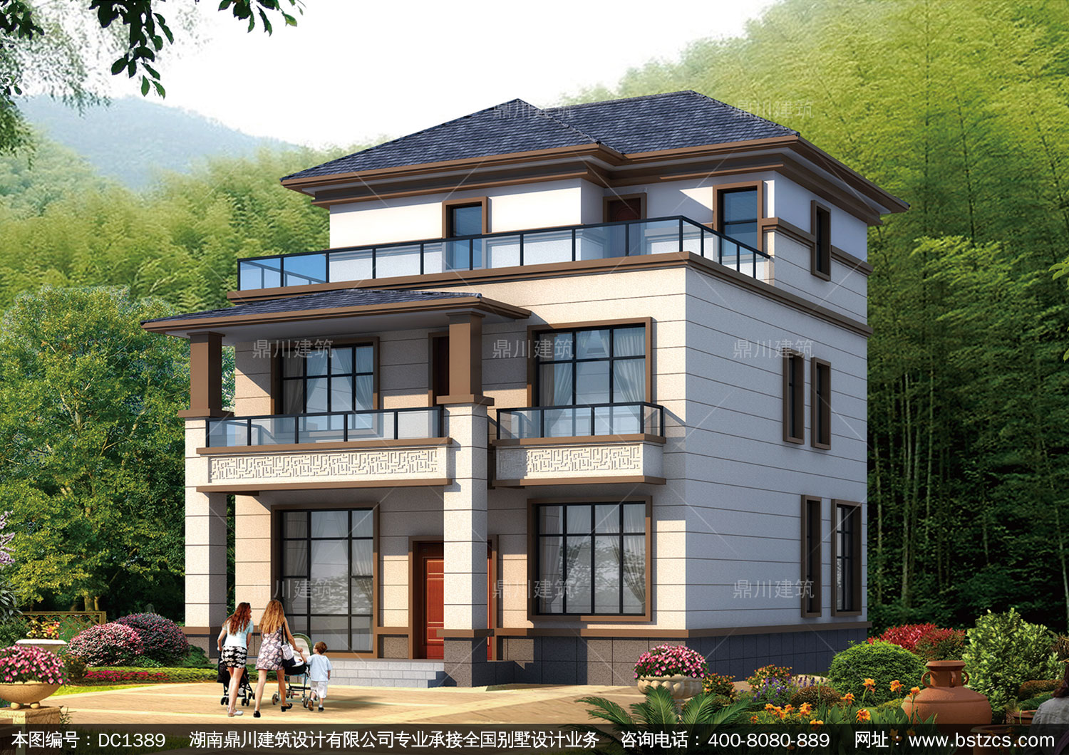 新中式三層別墅效果圖及施工圖紙_農(nóng)村自建別墅設(shè)計(jì),鼎川建筑