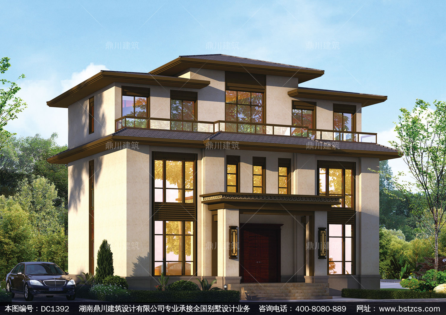 新中式三層別墅效果圖及施工圖紙_農村自建別墅設計,鼎川建筑