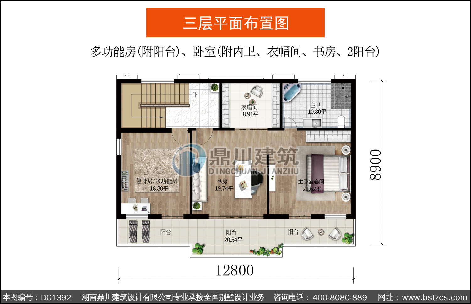 新中式三層復式別墅效果圖及施工圖紙_農村自建別墅設計,鼎川建