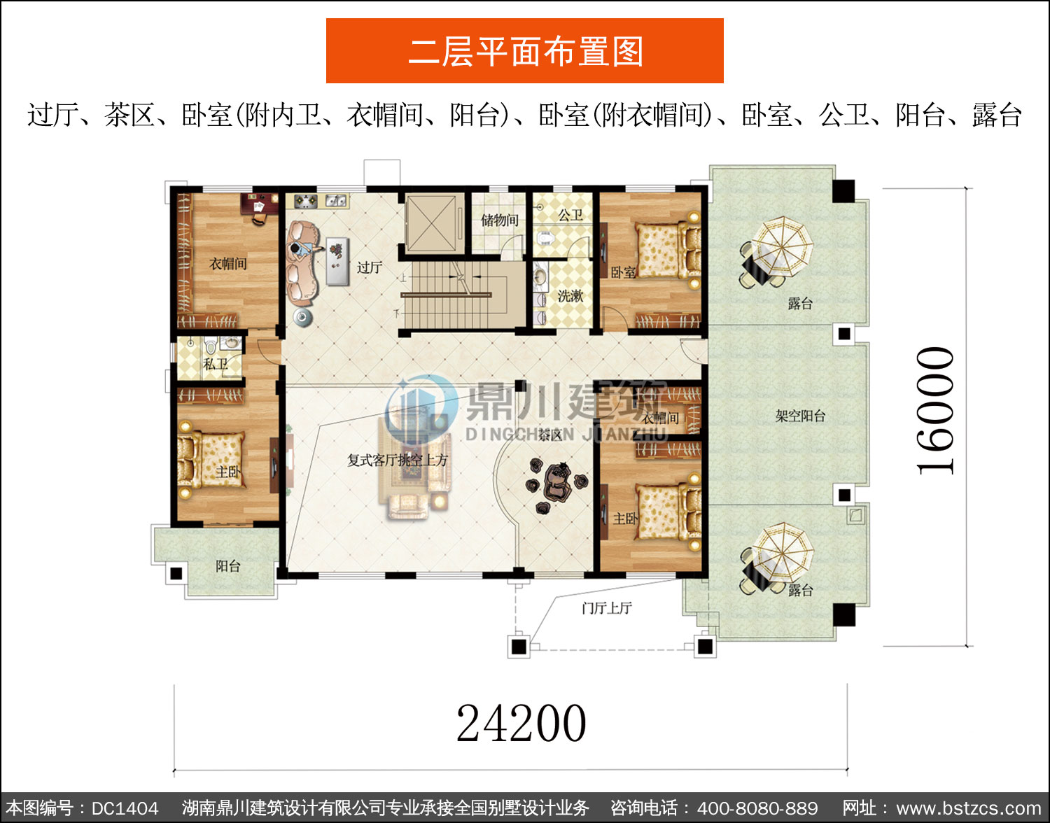 | 二 層: | 過廳、茶區、臥室(附內衛、衣帽間、陽臺)、臥室(附衣帽間)、臥室、公衛、陽臺、露臺 | |||