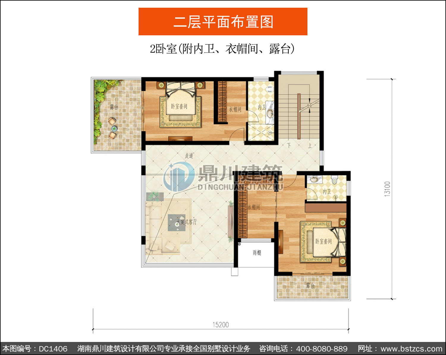 | 二 層: | 2臥室(附內衛、衣帽間、露臺) | |||