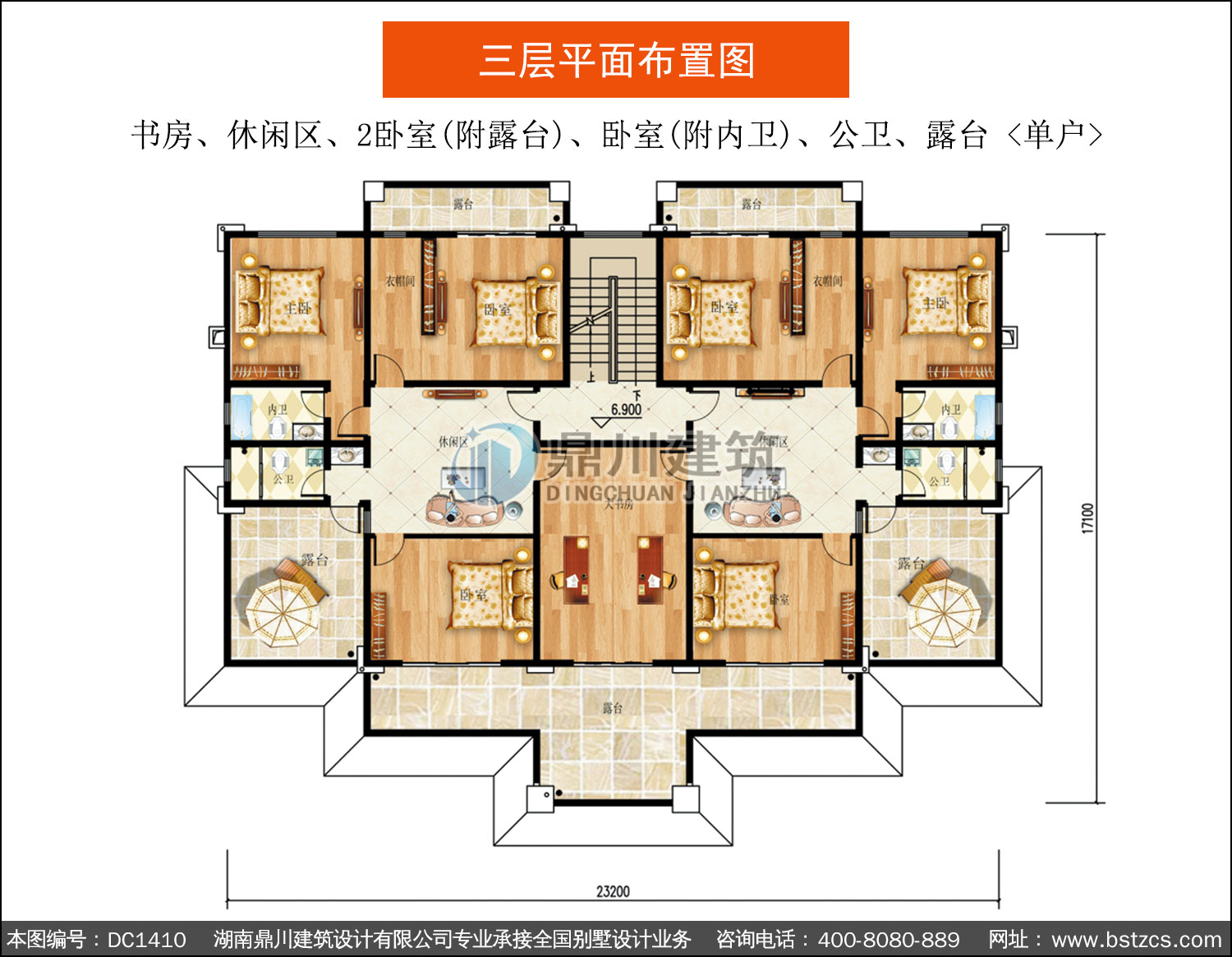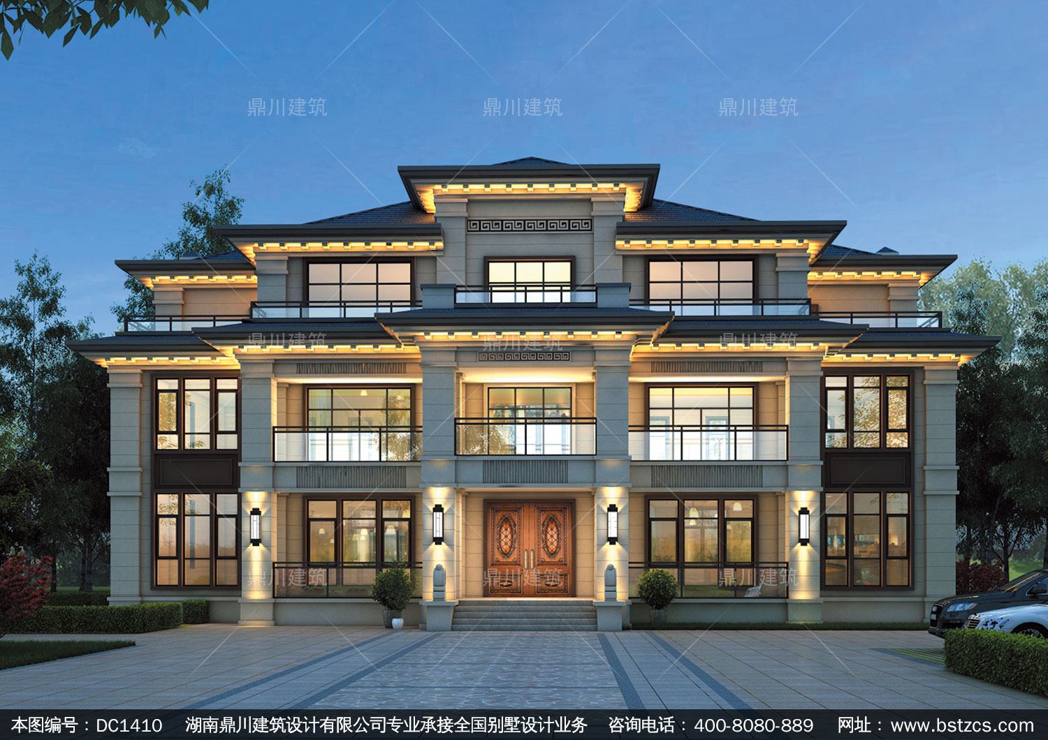 大氣新中式三層雙拼別墅效果圖及施工圖紙_農(nóng)村自建別墅設(shè)計(jì),鼎川建筑