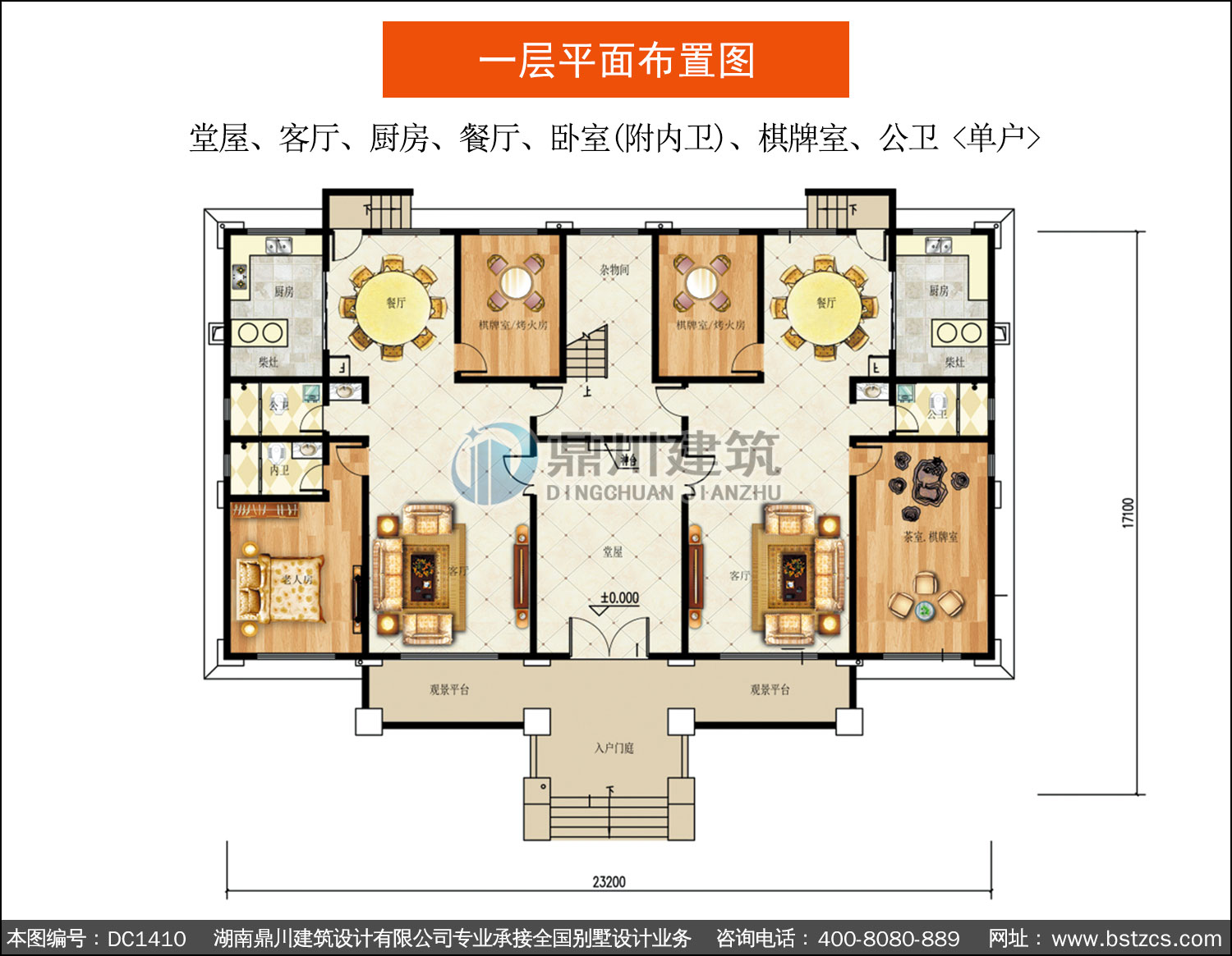 | 一 層: | 堂屋、客廳、廚房、餐廳、臥室(附內(nèi)衛(wèi))、棋牌室、公衛(wèi) <單戶> | |||