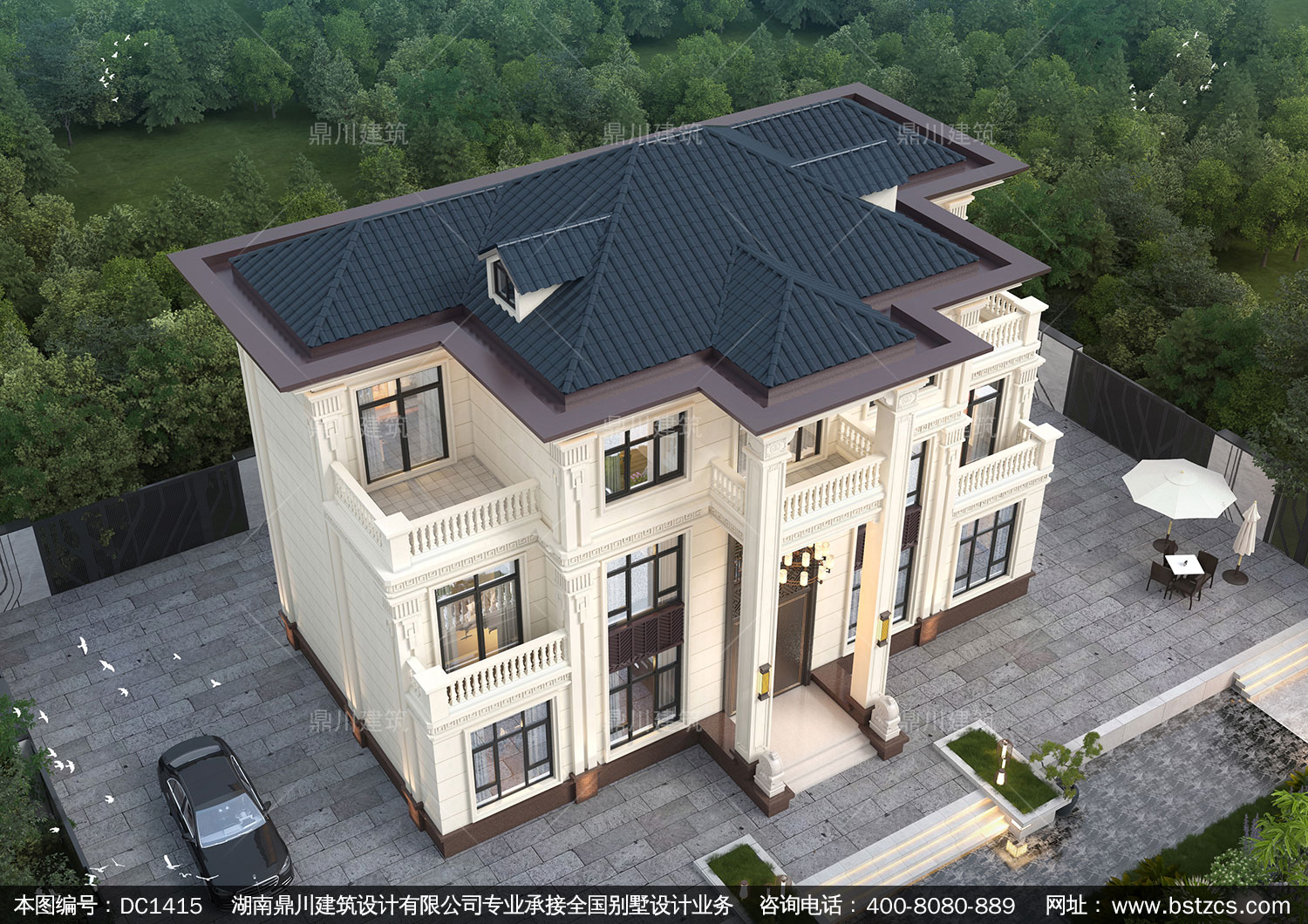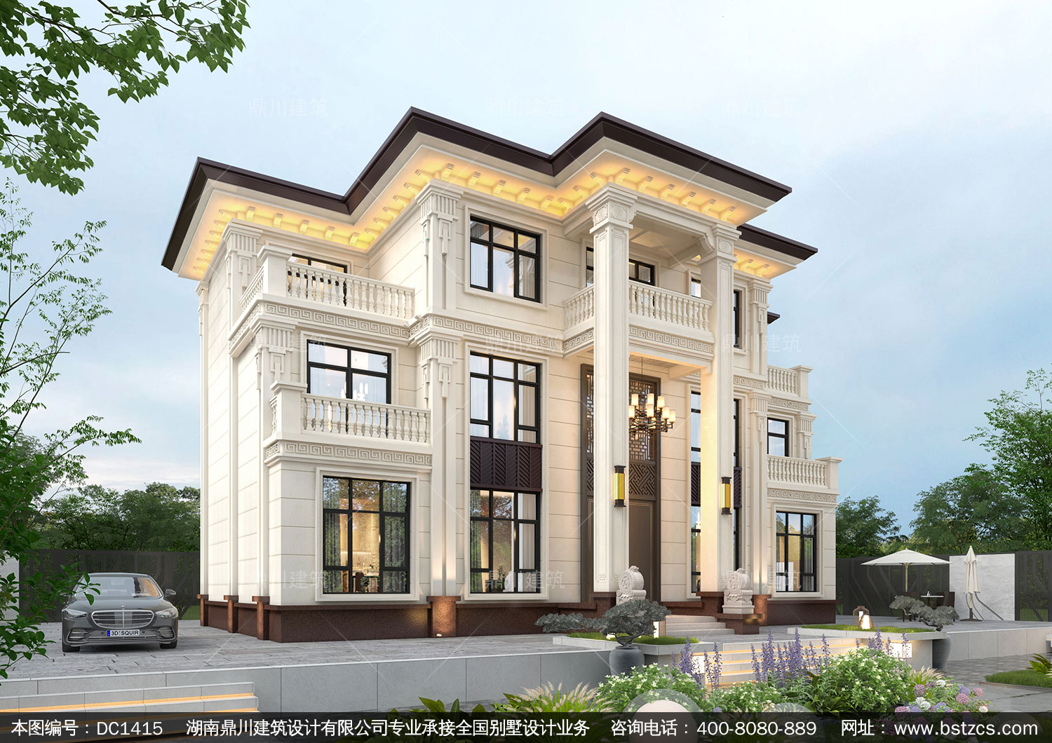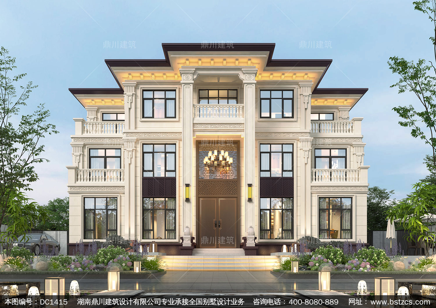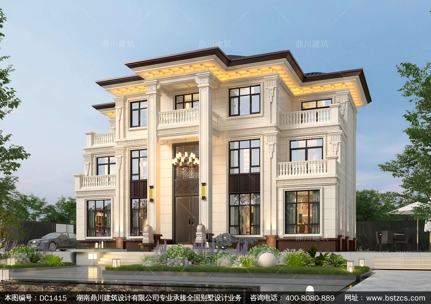 大氣新中式三層別墅效果圖及施工圖紙_農村自建別墅設計,鼎川建