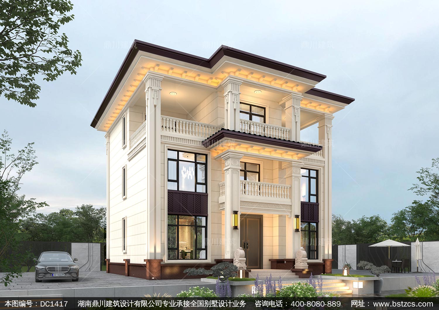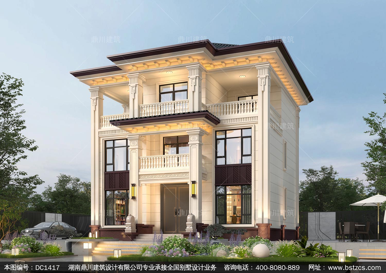 新中式三層別墅效果圖及施工圖紙_農村自建別墅設計,鼎川建筑
