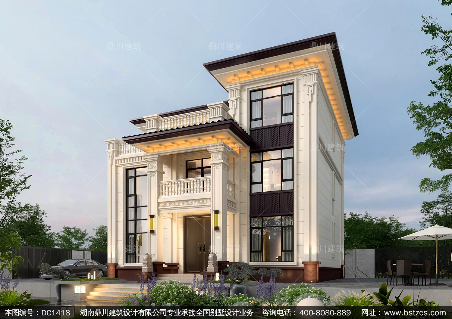 大氣新中式三層別墅設計圖紙及效果圖_農村自建房設計,鼎川建筑