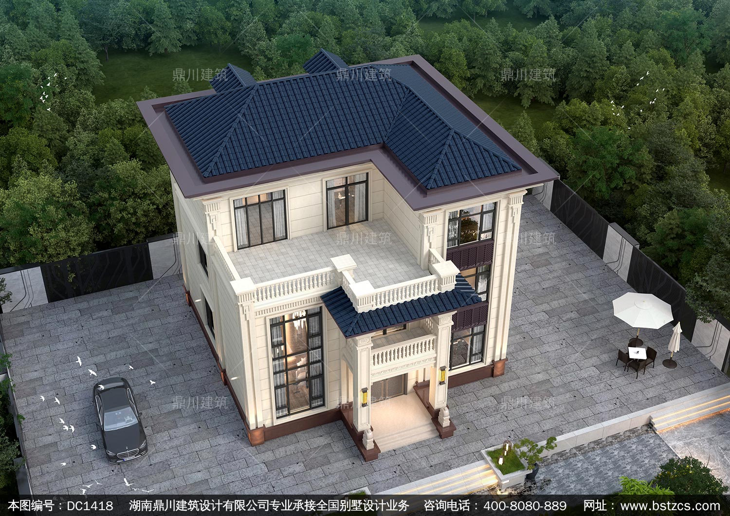 大氣三層新中式別墅設計圖紙及效果圖_農村自建別墅設計,鼎川建