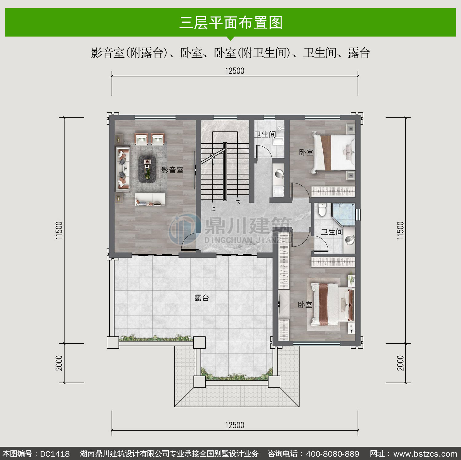 | 三 層: | 影音室(附露臺)、臥室、臥室(附衛生間)、衛生間、露臺 | |||