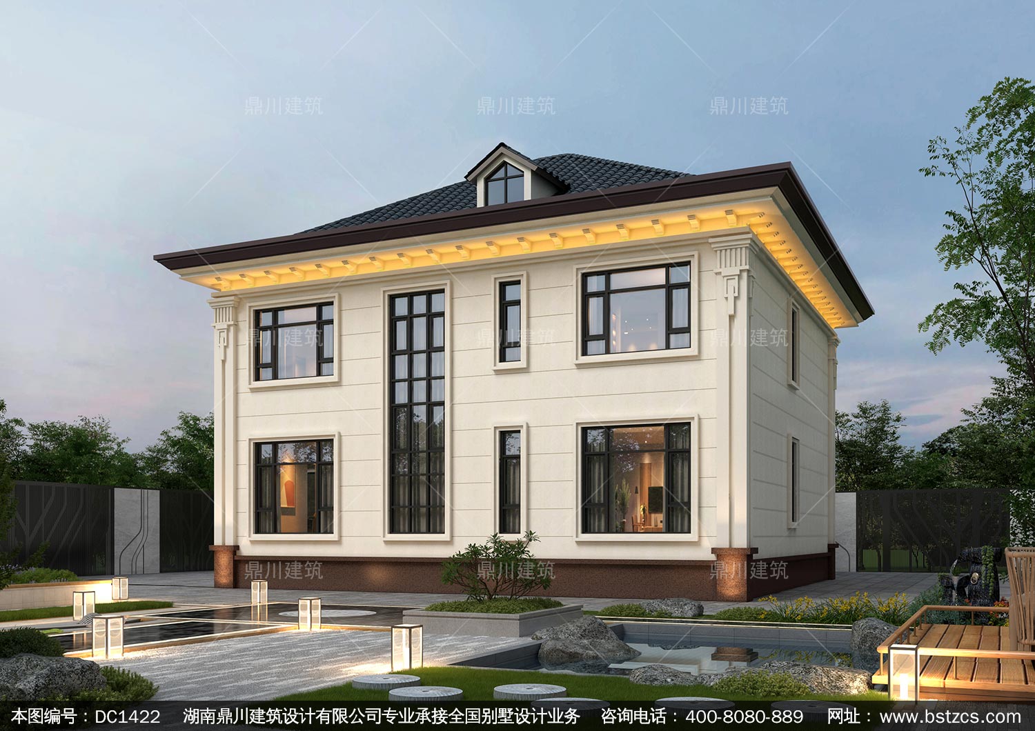大氣新中式二層別墅設計圖紙及效果圖_農村自建房設計,鼎川建筑