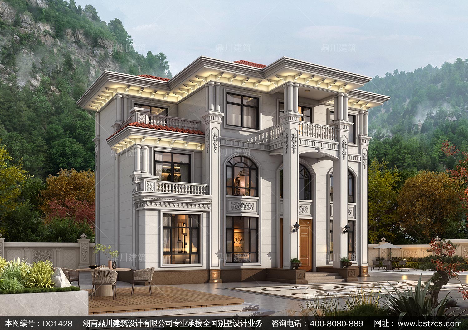 大氣歐式三層別墅設(shè)計圖紙及效果圖_農(nóng)村自建房設(shè)計,鼎川建筑