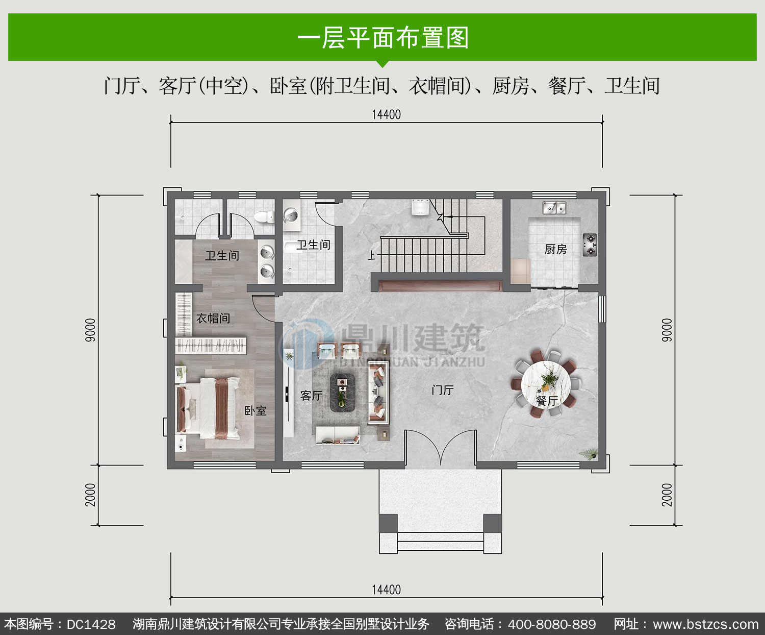 | 一 層: | 門廳、客廳(中空)、臥室(附衛(wèi)生間、衣帽間)、廚房、餐廳、衛(wèi)生間 | |||